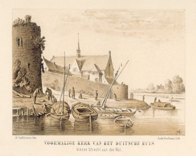 Heel vroeger stond op deze binnenplaats, aan de rand van de singel, de kerk van de Duitsche Orde, maar dat gebouw heeft er gestaan tot 1674. Bij diezelfde storm als waarbij de Domkerk is ingestort is ook deze kerk ingestort.