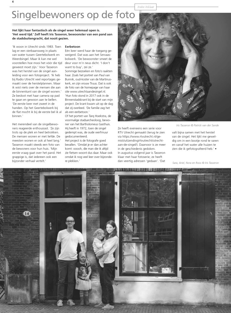 Aandacht voor het fotoproject Utrecht aan de Singel in de Binnenstadskrant. Wel triest dat Truus van Bunnik dezelfde week dat de krant uitkwam is overleden. Ik wens Paul van Bunnik en de familie veel sterkte met het verlies van Truus.